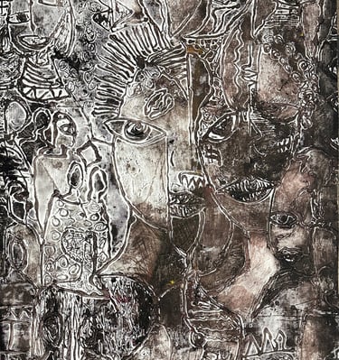 At Azizart, we showcase unique contemporary artworks across three mediums: reverse painting on glass, printmaking intaglio, and oil on canvas.